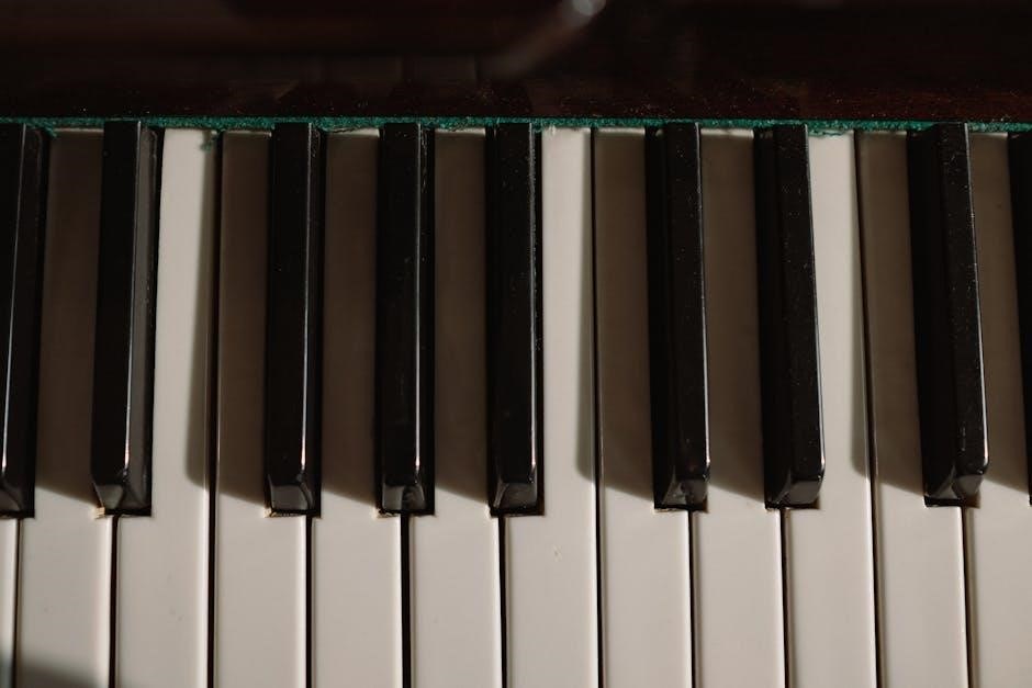 Students will learn to play chords, scales, and simple pieces in various styles; The PDF includes exercises designed to develop coordination, rhythm, and musical expression. Notably, the “EEI Piano Accompaniment Book 2” complements these materials, providing backing tracks for ensemble playing and practice. Access to these PDFs facilitates convenient learning and allows students to practice independently, enhancing their musical development.