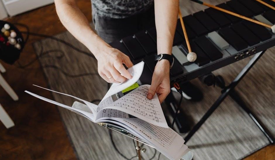 The PDF may include “call and response” exercises, where students improvise short phrases in response to a given musical cue. Pentatonic scales are often presented as a starting point for improvisation, providing a framework for creating melodic ideas. Though not a comprehensive improvisation curriculum, Essential Elements lays a groundwork for further exploration, sparking interest in spontaneous musical expression.